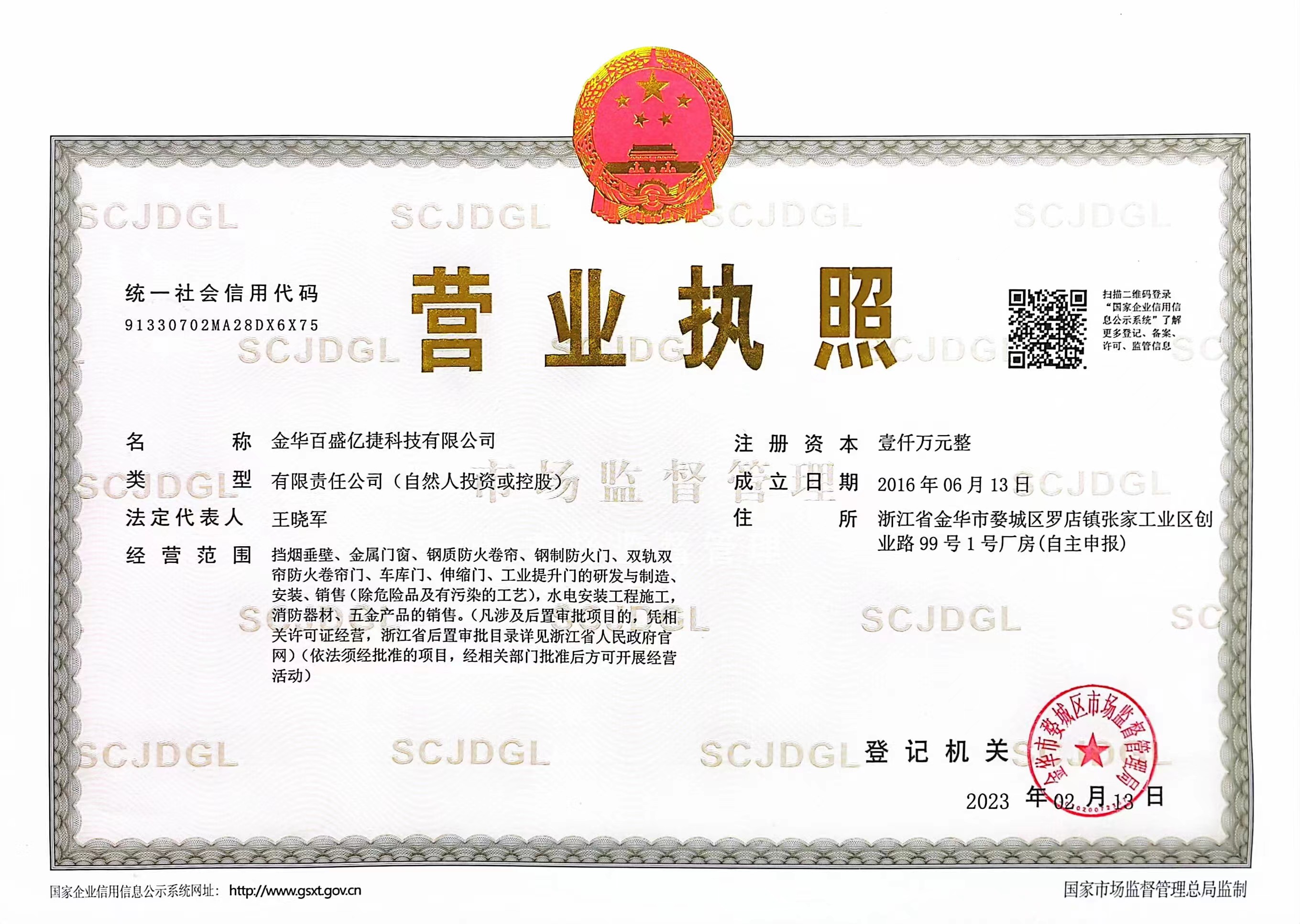 金華百盛億捷科技有限公司是一家銷售、安裝、維修服務(wù)為一體的現(xiàn)代化企業(yè),經(jīng)營(yíng)產(chǎn)品有:自動(dòng)感應(yīng)門、鋼制防火卷簾、鋼制防火門、雙軌雙簾防火卷簾門、電動(dòng)卷簾門、玻璃感應(yīng)門、電動(dòng)水晶門,自動(dòng)伸縮門、道閘、不銹鋼卷簾門、翻板車庫(kù)門、不銹鋼卷閘門等十幾個(gè)品種等系列產(chǎn)品;本公司以"質(zhì)量開拓市場(chǎng),以誠(chéng)信贏得市場(chǎng),以優(yōu)質(zhì)服務(wù)鞏固市場(chǎng)"為宗旨。注重產(chǎn)品質(zhì)量和細(xì)節(jié),不斷完善產(chǎn)品的售后服務(wù)。本公司擁有一批專業(yè)技術(shù)人員,培養(yǎng)了一批熟練的技工,員工具有豐富的安裝經(jīng)驗(yàn),產(chǎn)品造型美觀大方、新穎獨(dú)特,價(jià)位合理,安全實(shí)用 ,歡迎廣大新老客戶來(lái)電動(dòng)詳詢。